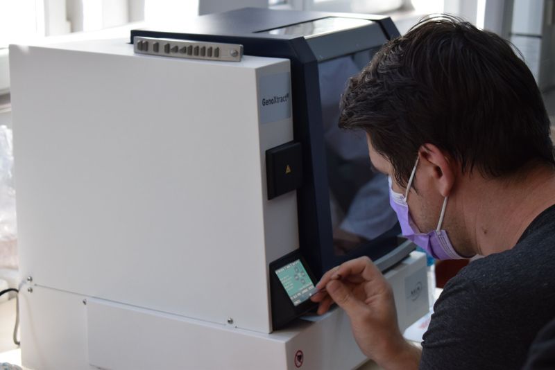 Extractorul automat de material genetic, ultima componentă necesară pentru funcționarea liniei de analize, este în probe tehnologice în laboratorul Spitalului Județean de Urgență Satu Mare.