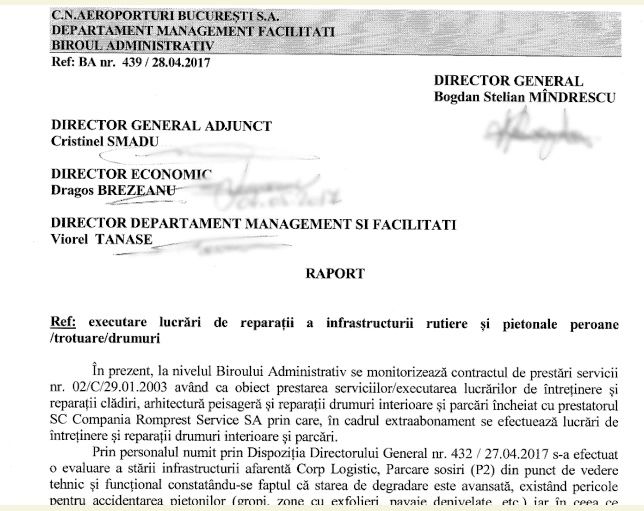 Documente în premieră despre cum dădea Bogdan Mîndrescu lucrări în plus la Romprest când era director la Compania de Aeroporturi