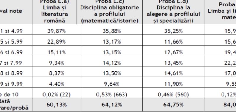 Aproape 40% dintre elevii de clasa a XII-a nu au luat nota 5 la Limba română, iar la matematică sau istorie, 35% nu au luat peste 5, potrivit comunicatului transmis de Minister, vineri după amiază, relatează edupedur.o.