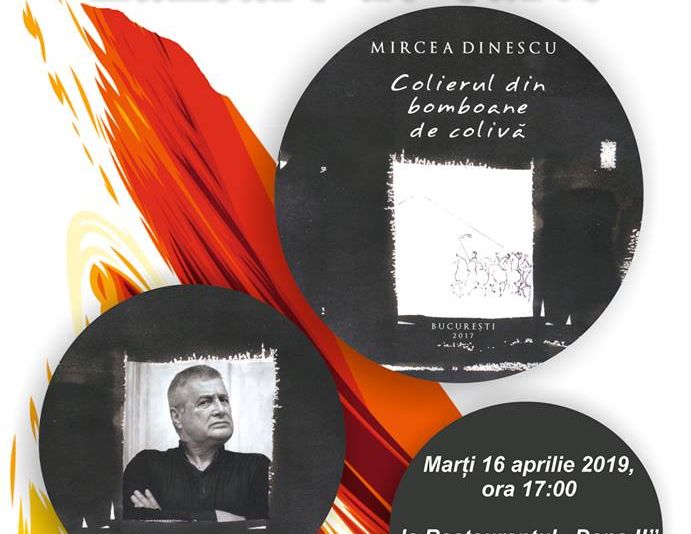 În organizarea Centrului Județean pentru Conservarea și Promovarea Culturii Tradiționale Satu Mare, cu sprijinul Consiliului Județean Satu Mare, în parteneriat cu Asociația Scriitorilor de Nord Vest și Cenclul Cronograf, marți 16 aprilie 2019, la ora 17:00, la restaurantul ”Dana II”, Piața Libertății 2 (din Centrul Vechi) va avea loc lansarea cărții ”Colierul din bomboane de colivă” aparținând celebrului poet, Mircea Dinescu.