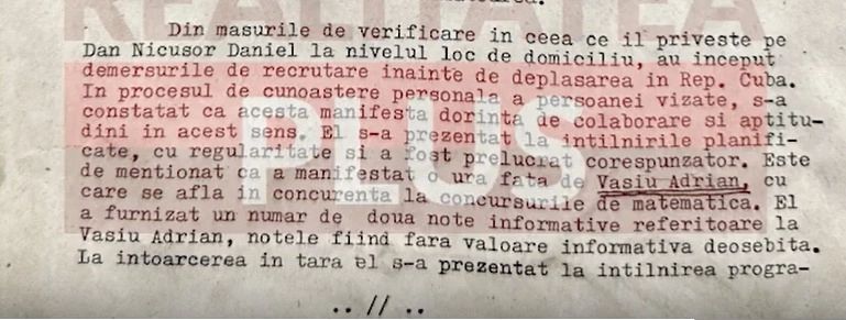 Documentul relevă că Nicușor Dan a furnizat două note informative despre unul dintre colegii săi. Mai mult, se sugerează că actualul primar a manifestat dorința de a colabora cu Securitatea, oferindu-se să devină informator.