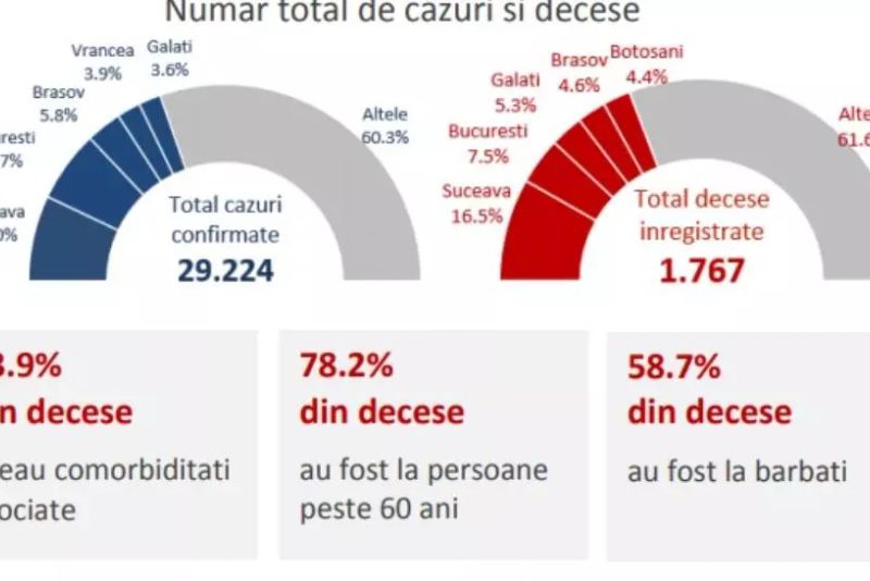- 93.9% dintre toți cei decedați aveau cel puțin o comorbiditate asociată.