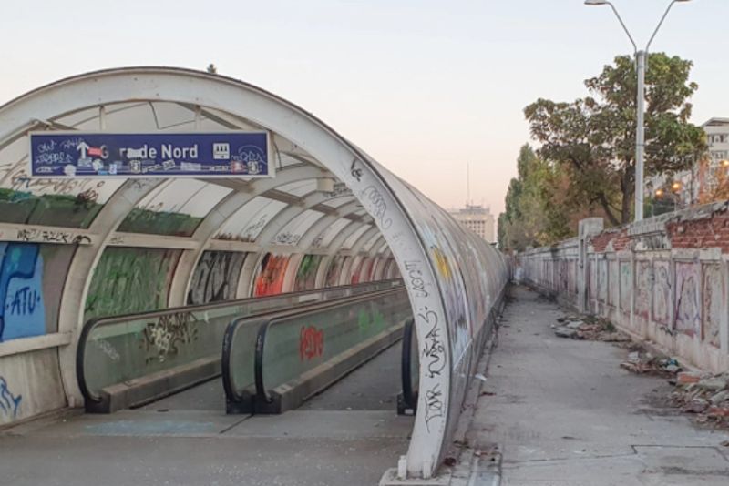 La mai bine de 10 ani de cand a fost dat in folosinta trotuarul rulant care trebuia sa faca legatura intre Gara de Nord și Basarab nu are nici acum receptia facuta. Dupa investiti de milioane de euro, pasajul este acum o ruină, vandalizat și plin de gunoaie.